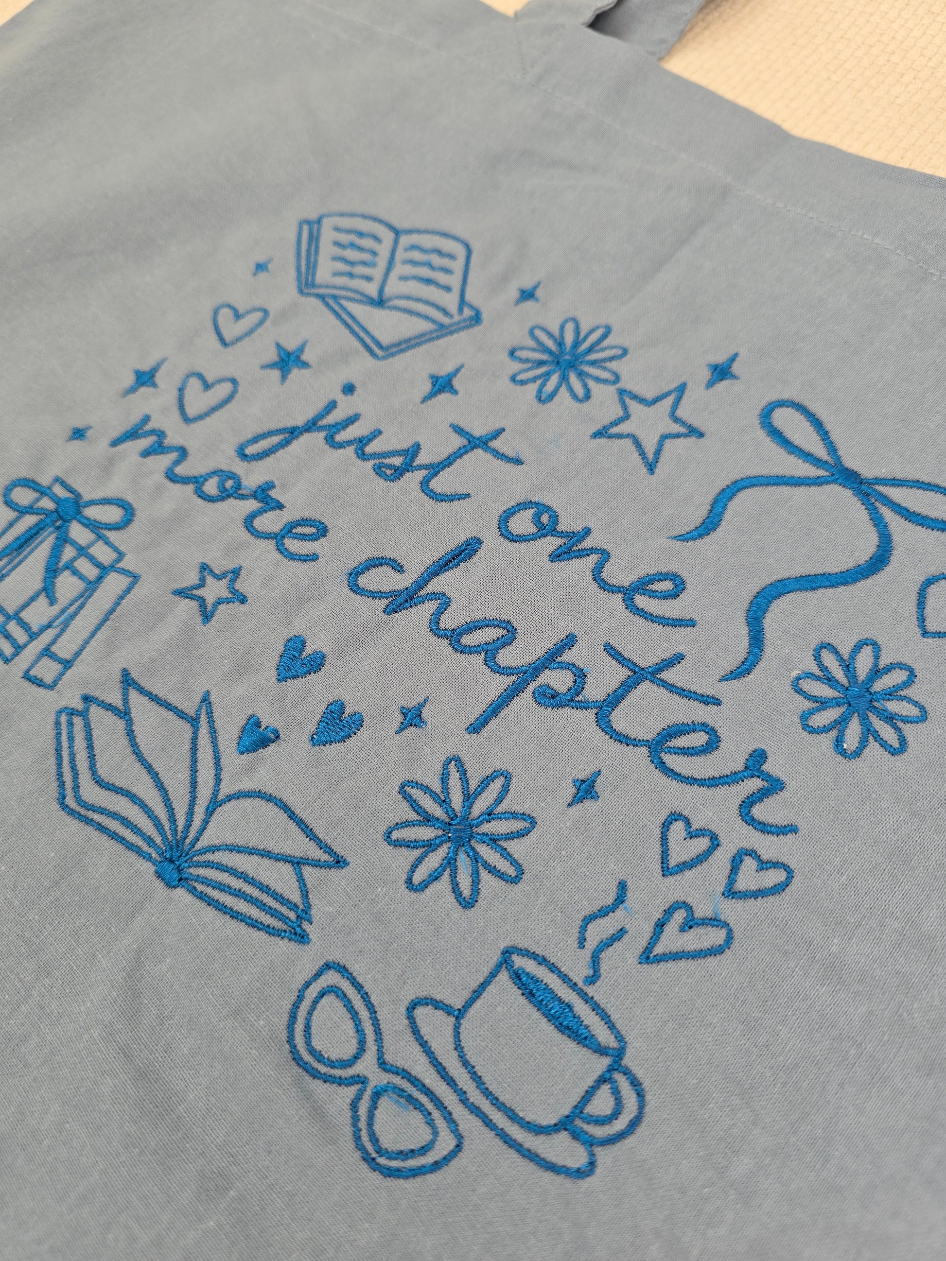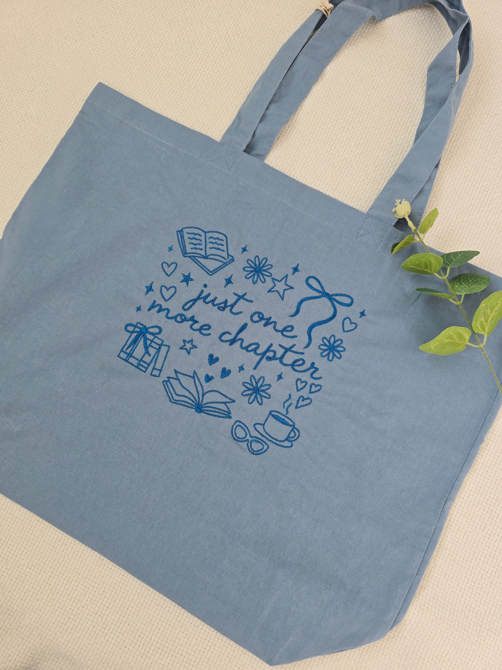 “Just One More Chapter” Limited Edition Embroidered Tote Bag - Dusky Blue